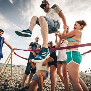 В первый день проходили тимбилдинги с многоэтапными конкурсами на пляже Олимпийской набережной. Командный дух был пробужден в каждом без исключения.