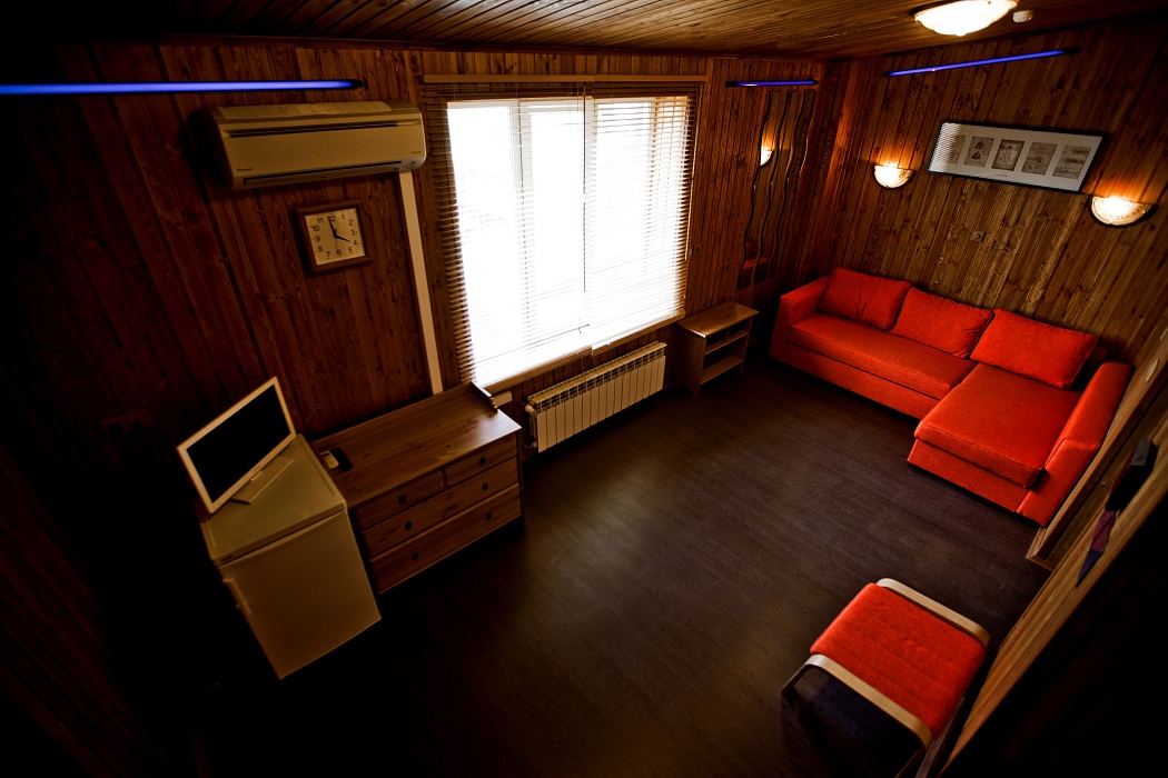 Для Вас все самое лучшее: Чистейший воздух из кондиционера Daikin, диваны из натуральной кожи, двух-ярусные кровати из натурального дерева! Кстати второй этаж двух-ярусной кровати выдерживает до 130кг!