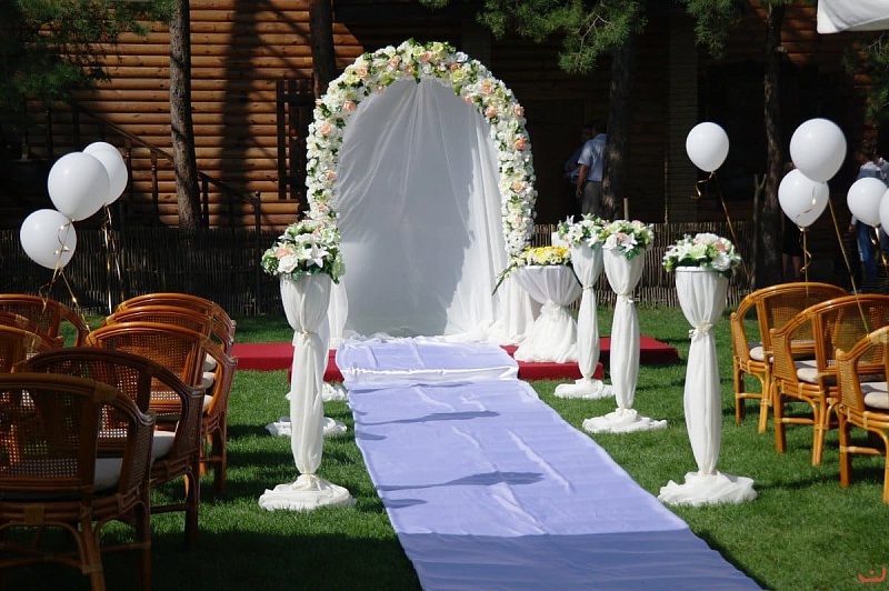 Дорогие гости, мы организуем лучшую свадьбу за городом под ключ. И начнется она гораздо раньше праздничного застолья. Мы проведем для вас фееричные мальчишник и девичник. Затем состоится торжественная выездная регистрация. Это будет незабываемо: она пройдет в шатре, утопающем в яблоневом саду. Ее дополнят изысканный фуршет на природе с хрустальной горкой из бокалов. А красавцы павлины станут талисманом долгой счастливой супружеской жизни молодоженов.База отдыха «Хутор Славянский» позволяет учесть потребности всех членов семьи, приглашенных на свадьбу, и предусмотреть все предпочтения молодоженов